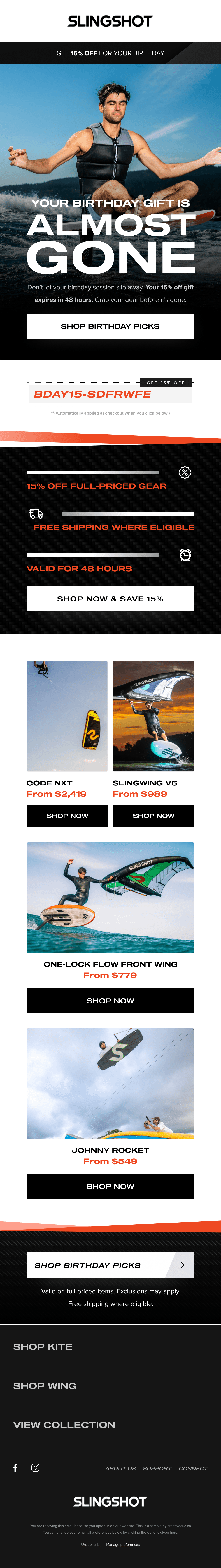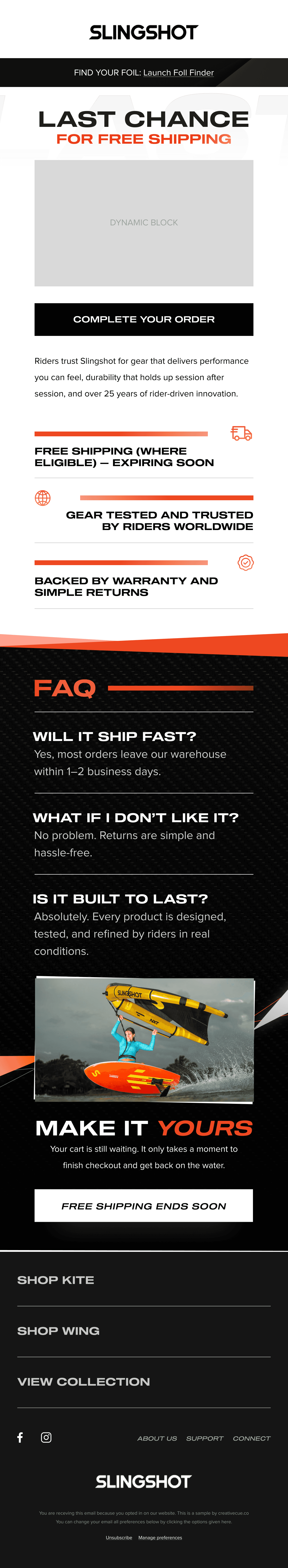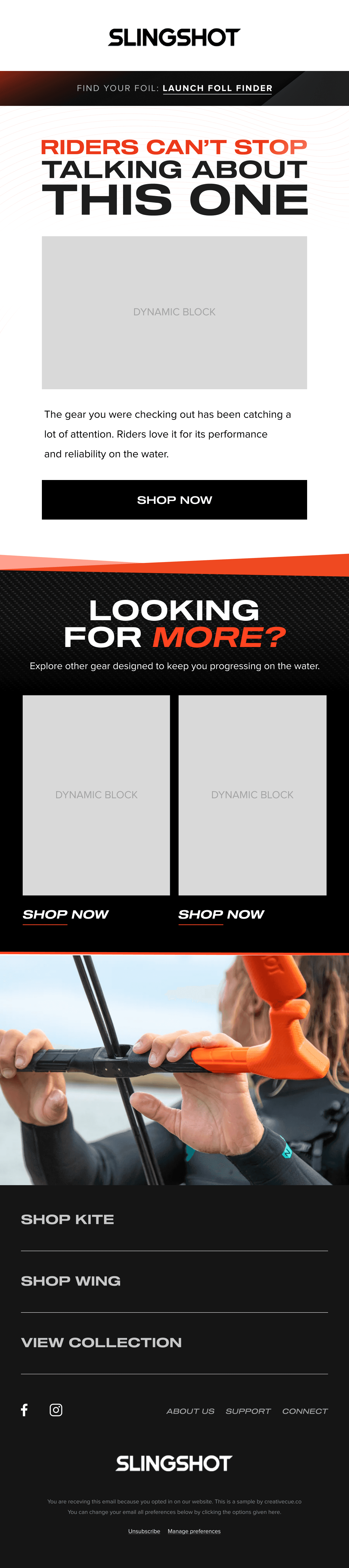 When Slingshot Sports first approached us, they were already an industry leader in water sports with over 25 years in business. However, their email revenue wasn’t pulling its weight, especially for their direct-to-consumer channel.